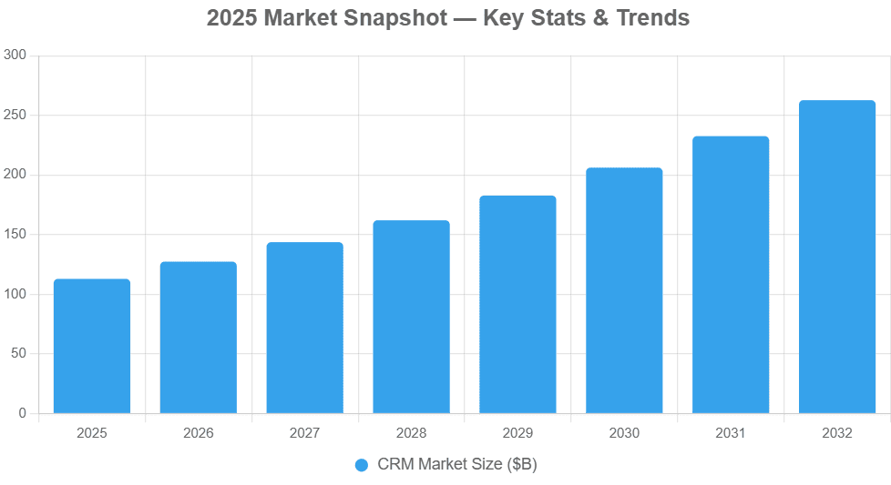 The CRM landscape in 2025 is exploding, driven by AI’s integration into core functions like sales forecasting, customer segmentation, and real-time interaction management. According to Fortune Business Insights, the global CRM market stands at $112.91 billion this year and is projected to reach $262.74 billion by 2032 at a 12.8% CAGR. This aligns closely with CRM.org’s forecast of 12% annual growth to $129 billion by 2028, though variances stem from differing scopes—Fortune includes broader services segments, while CRM.org focuses on software.